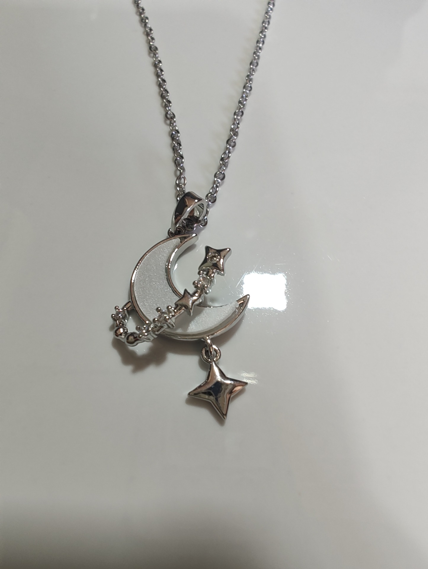 Cadena acero quirúrgico con dije bronce bañado luna