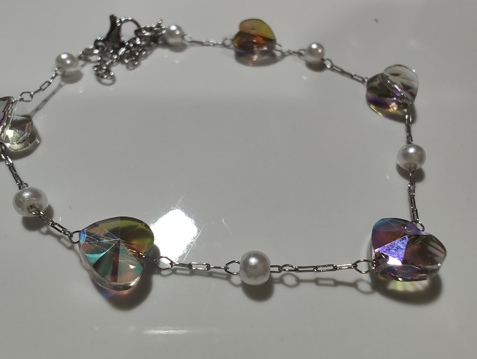 Pulsera acero quirúrgico perlitas y corazones